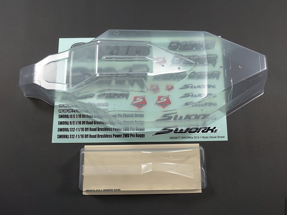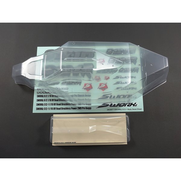 SWorkz S12-1 Eaglet Style Body Shell with Top Wing SW250040 varaosa RC-autoon.