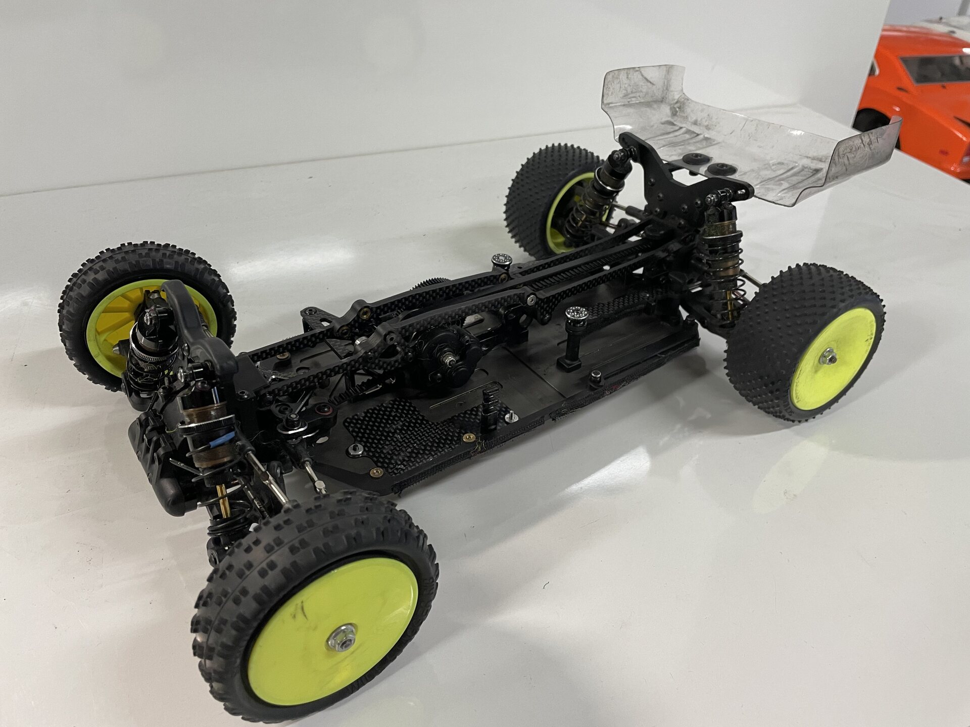 Auto myydään rullaavana ja mukana tulee liuta varaosia sekä viisi koria. Autossa on kiinni muutaman akun ajetut turffirenkaat. Edessä Schumacher Wide Stagger sekä takana Schumacherin Mini Dart.