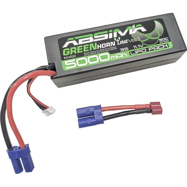Safety First !!!! Absima GreenHorn LiPo batteries maintain an extremely high quality standard and therefore offer perfect safety. An Absima GreenHorn LiPo battery is the perfect choice for beginners.