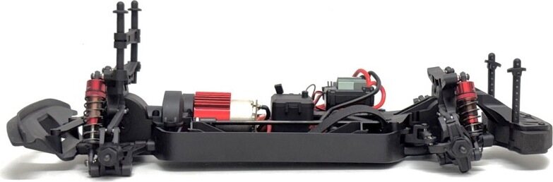 Kestävyys on viety uudelle tasolle. Kaikki muoviosat – etupuskuri, diffikotelo, monocoque‑tukivarret ja aerodynaaminen takadiffuusori – on valmistettu erityisen lujasta muovikomposiitista, joka tarjoaa erinomaisen jäykkyyden ja laadukkaan tuntuman.