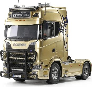 • This is a 1/14 scale R/C model assembly kit. Length: 469mm, width: 193mm, height: 315mm (excluding side mirrors, antenna, etc.). Wheelbase: 272mm. (35mm longer than Item 56368. )