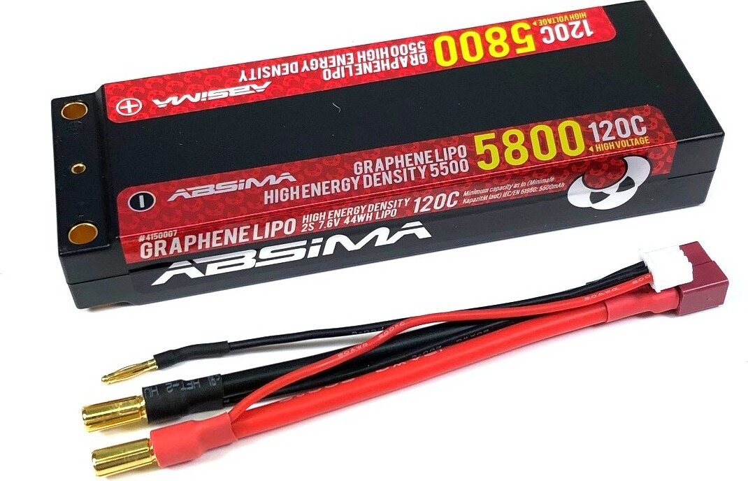 The ABSIMA Graphene Lipo series can be used as standard 7.4V LiPo Battery or as HIGH VOLTAGE (HV) LiPo with 7.6V.