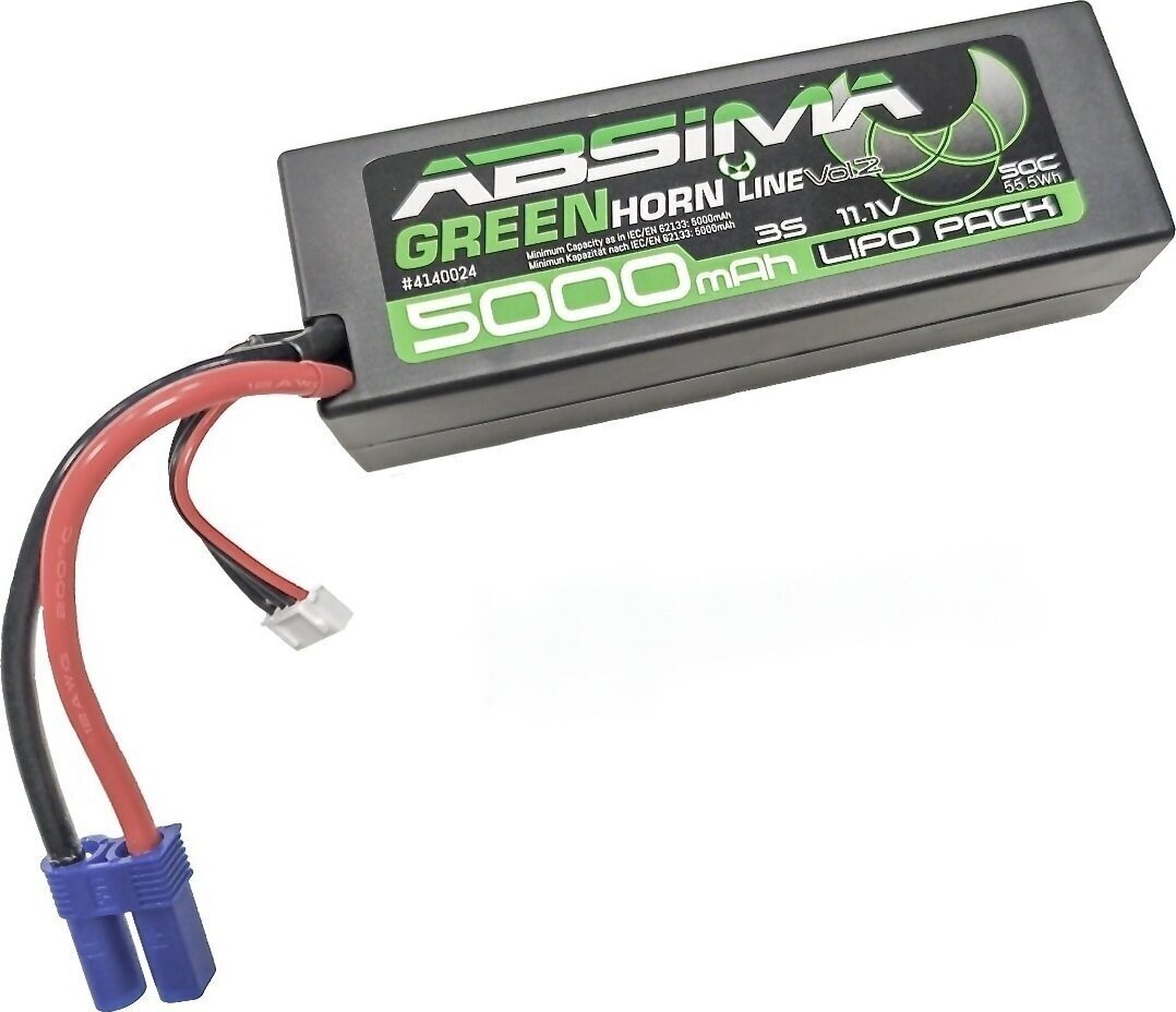 Safety First !!!! Absima GreenHorn LiPo batteries maintain an extremely high quality standard and therefore offer perfect safety. An Absima GreenHorn LiPo battery is the perfect choice for beginners.