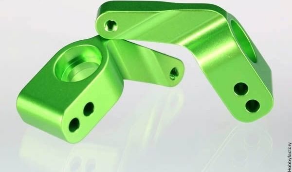 Tuotteen kuvausTraxxas 3652G Stub Axle Carriers Aluminiumreen (2) varaosa RC-autoon.