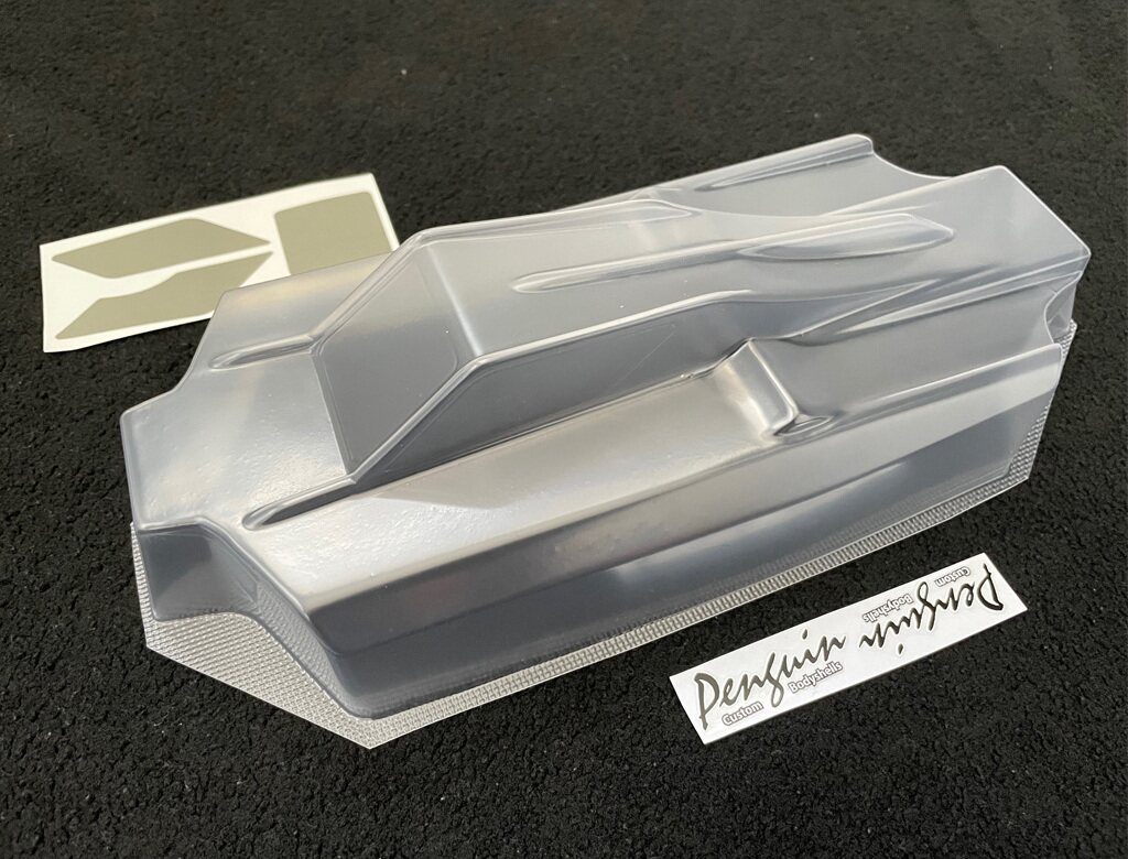 Supplied clear and available in both standard 0.75mm and lightweight 0.5mm version. Includes window masks and Penguin decal.