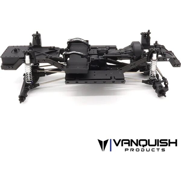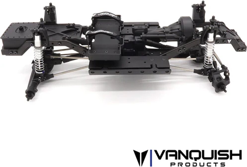 ChassisVanquish Products VS4-10 Chassis is made to provide you with a balance of scale looks and unhindered performance. The steel C-channel design provides scale detail, molded front and rear cross members fill the chassis rails in the highest stress locations for ultimate strength and provide features like dual servo mounts, winch line routing, and a fuel cell. The molded rock sliders come with a replaceable outer portion. The panhard mount on the chassis is made from machined aluminum to withstand the impacts of severe trail conditions. Molded shock towers capture the top of the 90mm Incision S8E Shocks in double shear for maximum support.