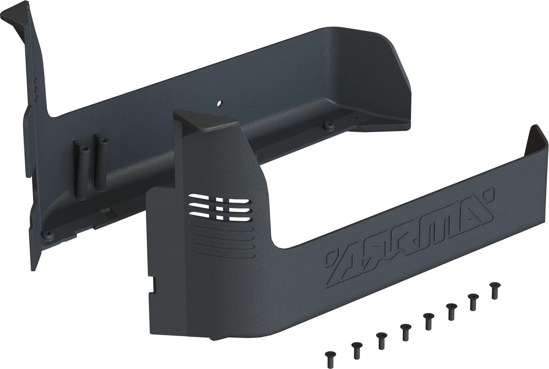 These Side Guards are molded from high-quality composite material. They mount to the side of your vehicle, above the chassis, and protect the center of the vehicle from whatever the terrain has to throw at it - be it dust, dirt, stones or mud.