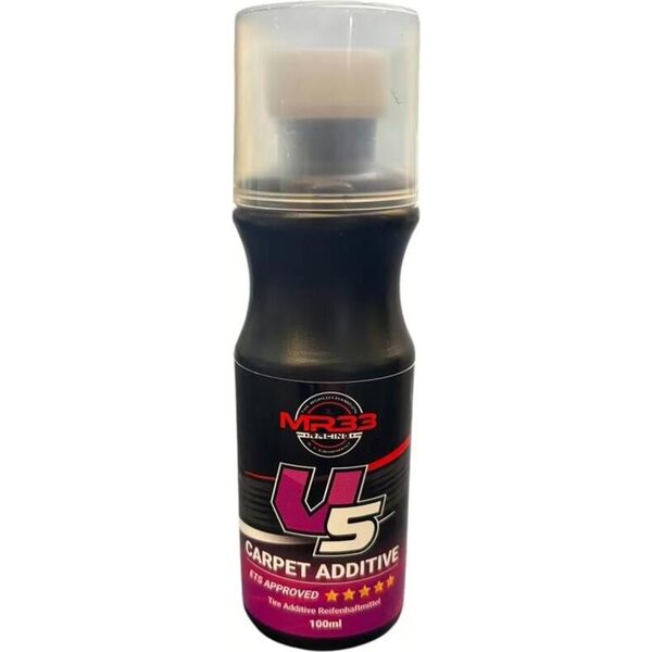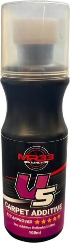 MR33 proudly presents the new V5 Tyre Adhesive, which is particularly suitable for use on carpets. It has been specially developed for carpet racing rubber tyres and foam tyres tyres and has a new advanced formula.