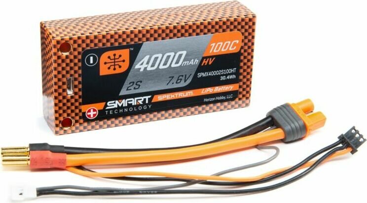 4000mAh 2S 7.6V 100C Smart HV LiPo Short 5mm Tubes SPMX40002S100HT