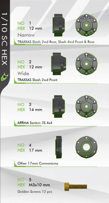 Sopii myös muihin 1/10 Short Course -autoihin, joissa on 12 mm, 14 mm tai 17 mm kuusiokanta