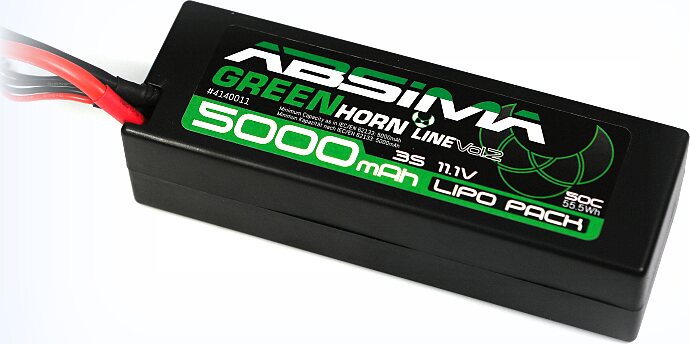 Safety First !!!! Absima GreenHorn LiPo batteries maintain an extremely high quality standard and therefore offer perfect safety. An Absima GreenHorn LiPo battery is the perfect choice for beginners.