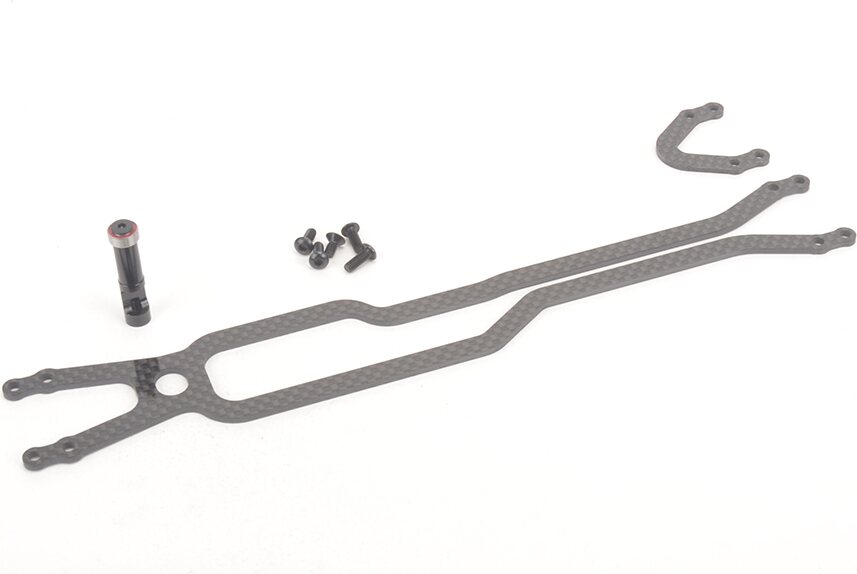 The top deck comes with an optional front U brace to stiffen the front of the car if required. We suggest the starting set up should be without it, then try adding the brace if the car needs more response.