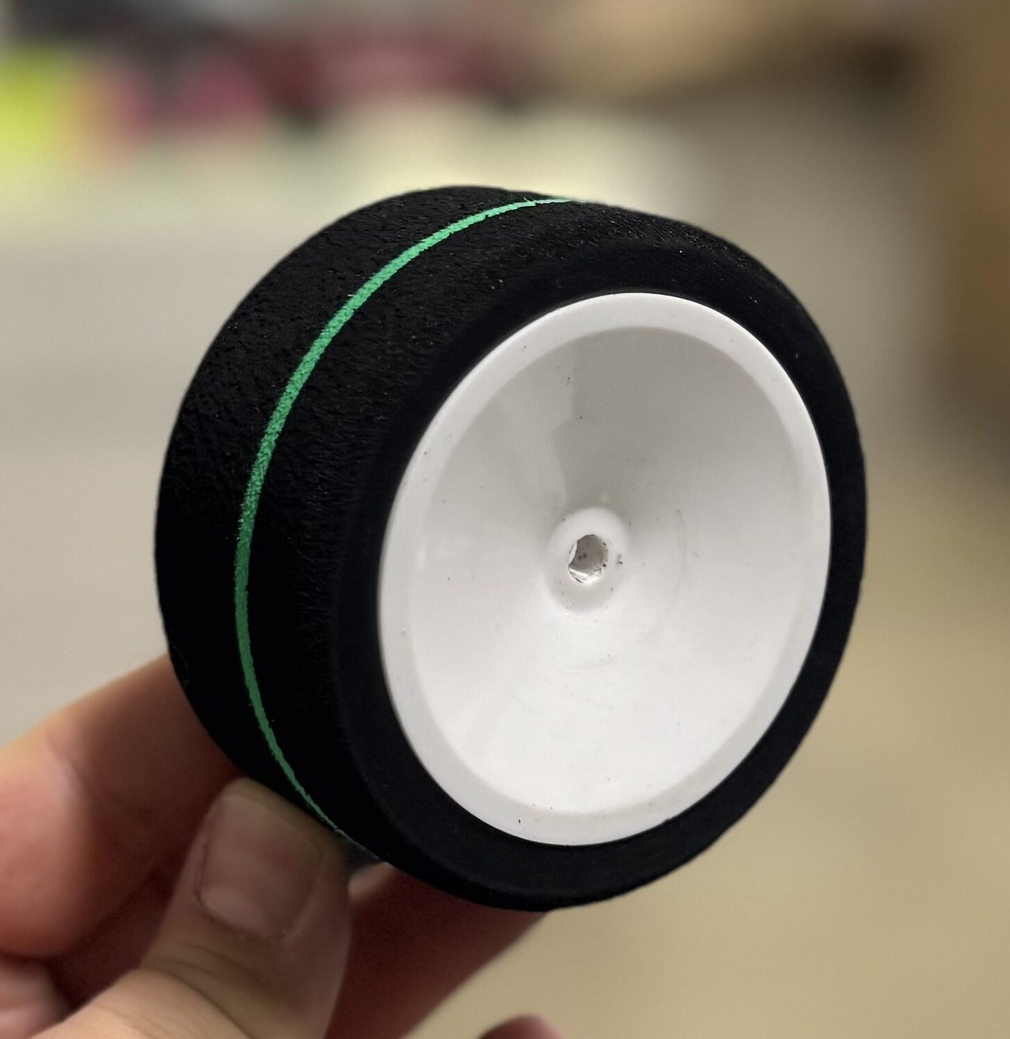 Valmiiksi vanteelle asennettu Hot Race Foam takarengas ja vanne. Kulmat on pyöristetty ja käytetty sorvin läpi joten ovat suoraan valmiita radalle. Tämä on laitettu lähtökohtaisesti Team Associated vanteelle, tai satunnaisesti Schumacher vanteelle. Asennus on tehty Suomessa kisakuskien toimesta.
