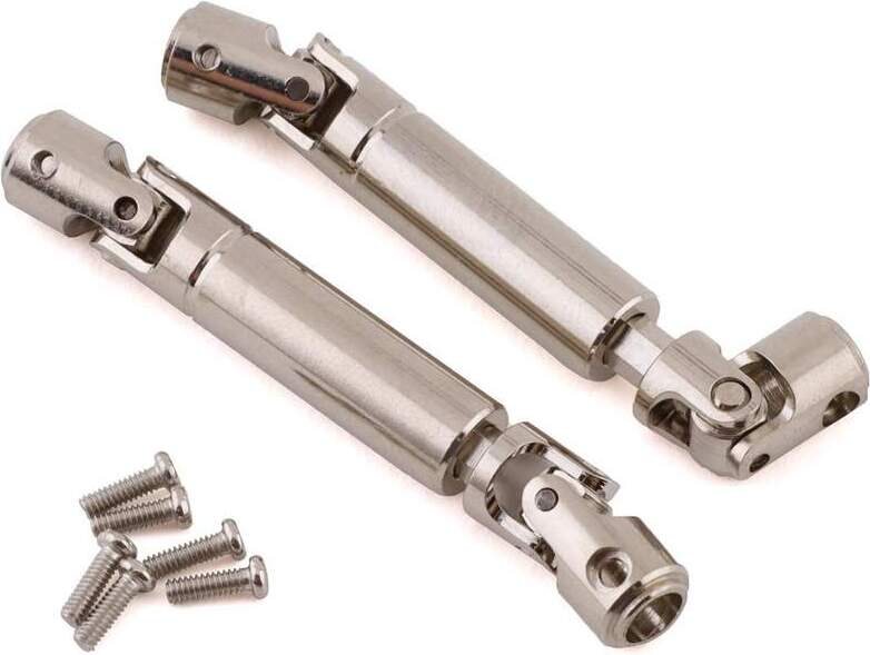This main drive shaft set is an optional upgrade for the 1:24 Scale Mini Crawler. Made of durable steel, these shafts increase strength and durability compared to the stock plastic driveshafts. Package includes front/center and rear/center driveshafts, as well as mounting hardware.
