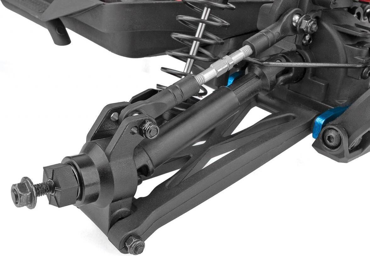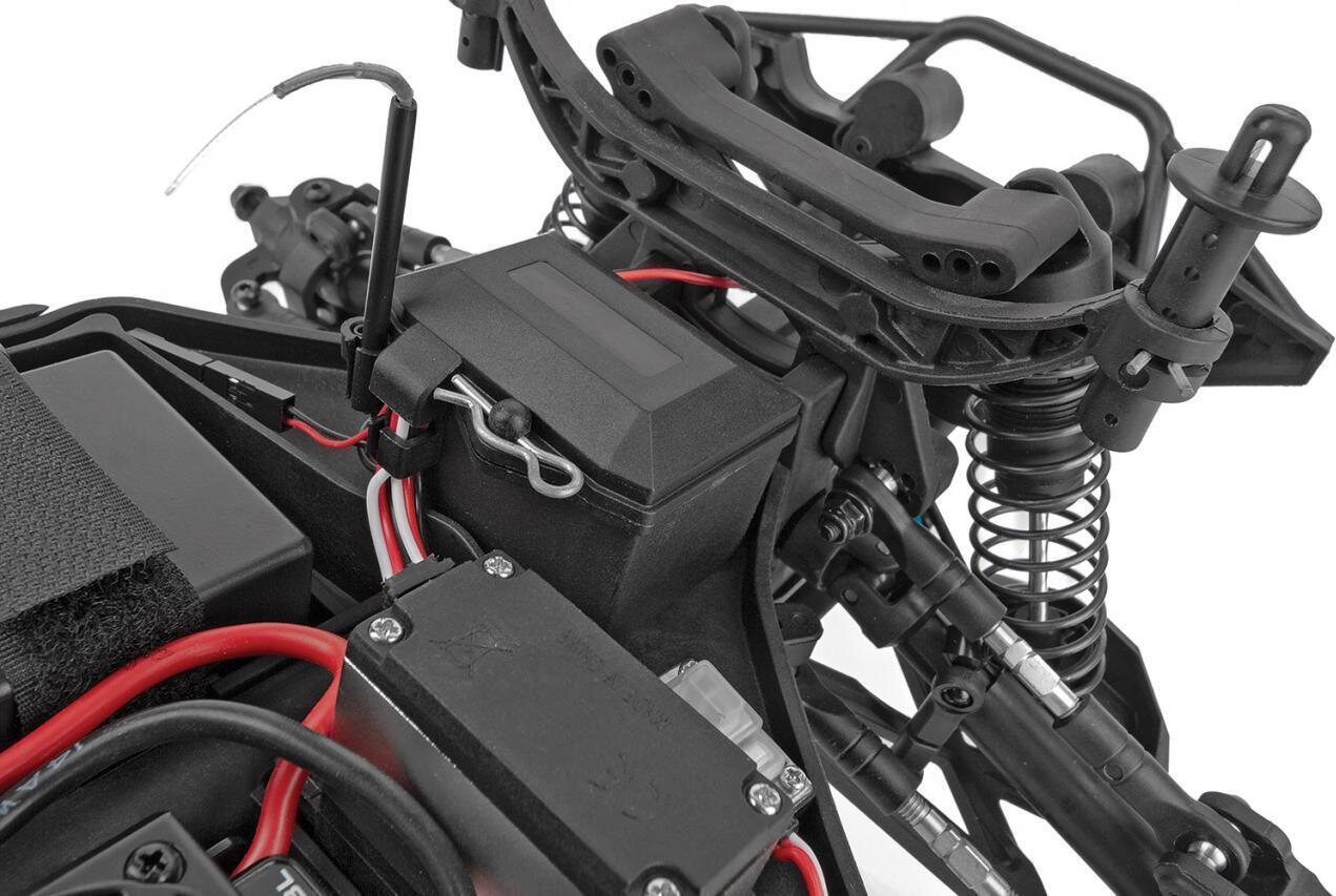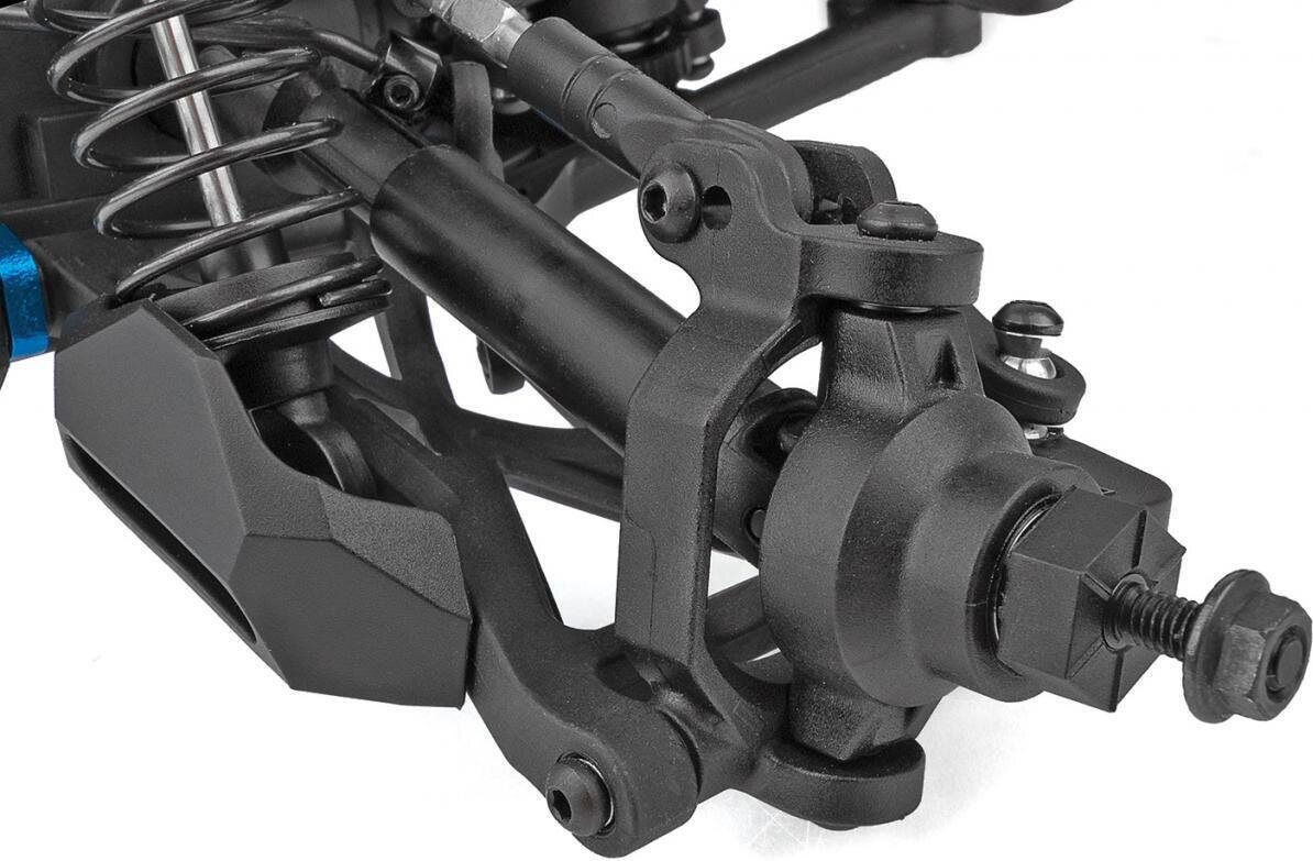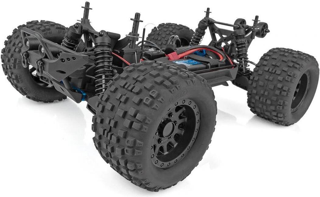 The RIVAL MT10 features long-travel independent suspension that is managed by four fluid-filled, adjustable coil-over shocks, giving the RIVAL MT10 the ability to roll over just about anything in its path. Giant aggressive monster truck tires provide maximum traction, letting the RIVAL MT10 claw through the toughest terrain with ease. The 4WD drivetrain includes three sealed gear differentials that transfer the power through durable, slider-type drive shafts to both ends of the truck.