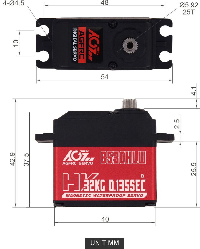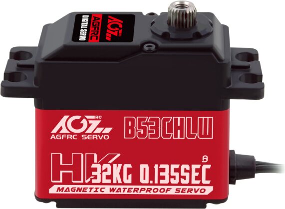 AGFRC B53CHLW jatkaa suositun B53CHL V2 -servon vahvuuksia ja vie ne uudelle tasolle. Uudistettu versio tarjoaa ohjelmoitavan elektroniikan sekä IP67‑luokitellun magneettisen vesitiiviyden, mikä tekee siitä erinomaisen valinnan malleihin, joita käytetään kosteissa olosuhteissa – esimerkiksi joen rannalla, tihkusateessa tai RC‑veneissä.